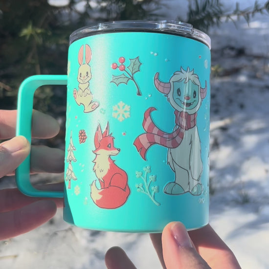 Stay warm and cozy this winter with this stainless steel mug, designed by Chrissie! Enjoy your favorite hot or cold beverage with some animals of the forest to keep you company. Available for a limited time only!